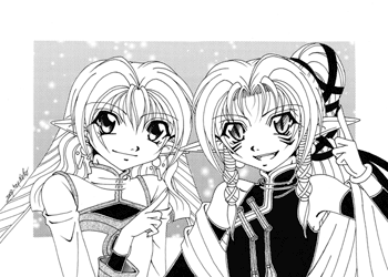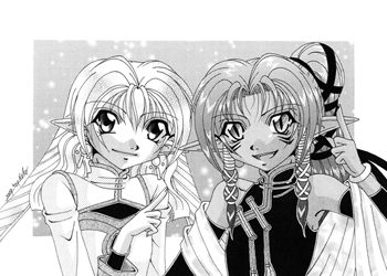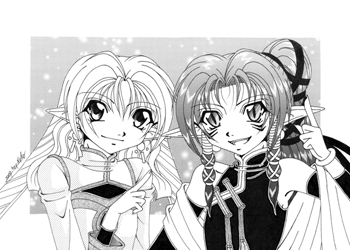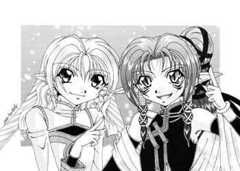 前のとあんまり代わり映えしないですが・・・柄トーンで遊んでみよう!ということで、螺鈿の肩布とメリルーシェの髪に柄トーンを使ってみました。普通に網点トーンや砂目・罫線だけでも十分ですがそれだとちょっと単調かな?と思ったときに柄トーンは良いです。背景ではなくてキャラに柄トーンを使うことを覚えればまた世界が開けます。