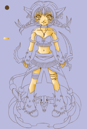 覆い焼きツールは綺麗ですがあんまり使いません、金属や髪のハイライトはエアブラシで覆い焼きっぽく塗っていきます。