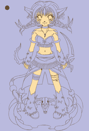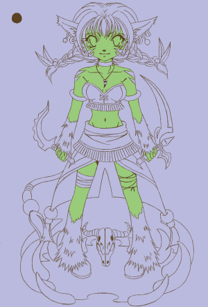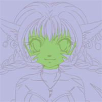 描き上がった線画は一番上のレイヤーにしておきます。そして線画のあるレイヤーの直ぐ下のレイヤーを絵の中で絶対に使うことのない色でベターと塗りつぶしてしまいます。この絵は暖色系の色合いにするつもりなので寒色系の色で塗ってます。