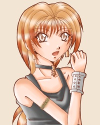 | 髪:金、先だけ赤く染めている 瞳:琥珀 | ||