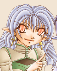アークウィンが8歳の時にたまたま召喚してしまい、暴走させてしまった精霊で、現在は魔力に大きな制限をかけられた状態でアークウィンの従精霊。アークウィンが彼を略名でしか呼ばないのは彼の名そのものがリミッター解除の呪文になっているため。 『異界』から召喚される精霊たちの王で、彼を召喚できるのは多分アークウィンが最初で最後。 心優しく常に穏やかで、幼い外見とは裏腹に思慮深い大人。 螺鈿とは顔を合わせるたびに喧嘩しているが、仲は悪くない。 >>アークウィン |