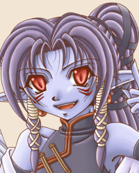 | 髪:紫 瞳:赤 肌:青 | ||