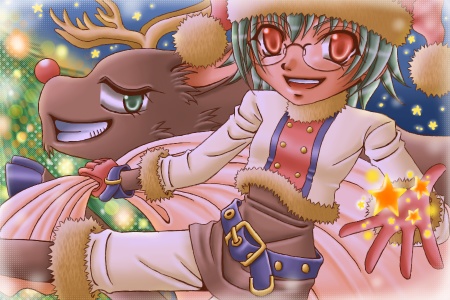 2011年クリスマス〜。ここ最近クリスマス絵は女の子ばかりが続いたんで今年は男の子で、そして白サンタで!女の子に見えなくもないですが男の子です;眼鏡っ子なのは私の趣味です(笑)。