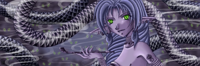 大きなお絵かき掲示板サイトさんでお絵かきチームバトルに参加させて頂いた絵その3。ちょっとありがちかもな蛇お姐さん。 実はとても大好きなゲームのBOFシリーズのディースという蛇お姐さんをモデルにしてたりします。 本当はお姐さんの顔も見切れていて口から下しか見えないようにして顔のない絵にしたかったんですがどうしても瞳を描きたい衝動に駆られて負けてしまいました(笑)。結果緑に光る瞳がとっても好評だったのでそれはそれで良かったのかな?と思います。 蛇のウロコを描くのが楽しかったんですが難しくもあり途中何度もこれが松ボックリに見えてきました(笑)。 ちなみに珍しくクオ1で描いてます。工程数10000越しても動きが軽快でビックリです。 |