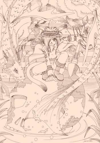 遺跡守の腕に描かれた文様が遺跡の入り口を開く鍵で、遺跡守を殺してしまうと文様は消えてしまう。決して彼を殺すことなく彼に力を示さなければならない。 代々遺跡守をしている家系の、彼の代になってからこの最初の難関を突破できた者は一人もいない。 まだ序の口、最初の難関をもし突破できても遺跡の中にはまだまだ難関が沢山。 遺跡の最深部の財宝が一体何なのかまだ誰も知らない。 web拍手用に描いた絵です。命一杯描き込めてとても楽しかったです♪ 雰囲気は気に入ってますがうっかり構図がこの絵とそっくりになってしまいました。長いのが画面の上の方から下に向かってるとことか・・・。痛い。 骸骨を描いてもなんだか愛嬌があるのは損な絵柄なのか得な絵柄なのかどっちなんですか?(笑) |