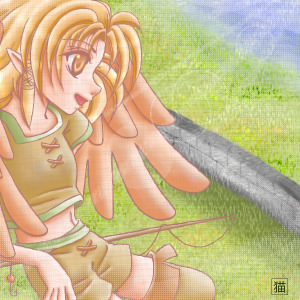 いかにも私らしい絵なんじゃないかと?何度もコンティニューして9時間かけて描いた絵です。お気に入り♪下描きの段階では妖精らしく蝶の羽が生えてました。