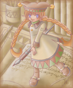 アイヌっぽい女の子が描きたかったのですが途中で国籍不明に。肩にかけてる布にちょっと名残が・・・。そして開き直って髪を白に塗る(笑)。