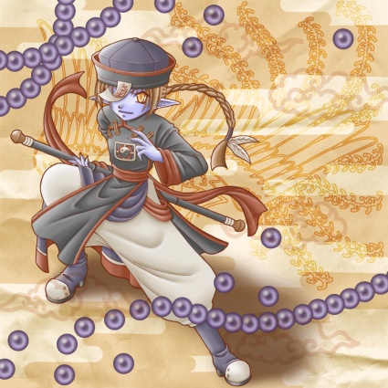 キョンシーの道(タオ)。即興キャラですが名前まですぐに浮かんだ(笑)。青肌東洋衣装なので螺鈿に似ないようにするのが結構大変でしたトカ。